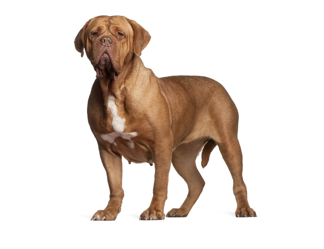 Anjing berukuran raksasa ini memiliki kepala yang besar, lebar, bulat dengan banyak kerutan. Mereka memiliki leher dan tubuh yang kuat dan berotot dengan dada yang bidang. rambut Dogue de Bordeaux pendek dan cukup lembut untuk disentuh, dan bisa hadir dalam warna coklat kekuningan. Jantan dewasa berukuran sekitar 60-68cm dan berat setidaknya 50kg, sedangkan betina dewasa 58-66cm dan setidaknya 45kg.