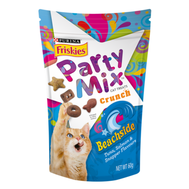 Snack Kucing Kering dengan rasa Beachside; Tuna, Salmon; Snappers, digunakan sebagai makanan selingan dan diberikan sebagai hadiah. Digunakan sebagai makanan selingan dan diberikan sebagai hadiahMengandung sereal gandum utuh, olahan daging, minyak nabati, vitamin, mineral & asam amino.Snack Kucing kering dengan rasa Tuna, Salmon & Snapper