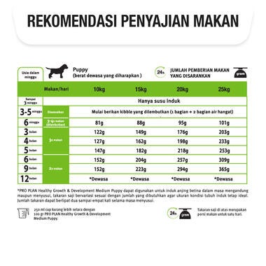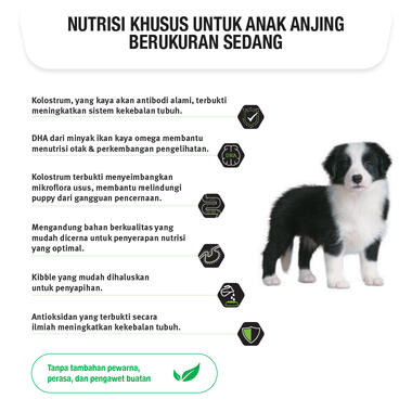 Pro Plan Puppy Healthy Growth &; Development Medium dengan rasa ayam mengandung nutrisi khusus untuk anak anjing berukuran sedang sampai usia 12 bulan. Cocok juga untuk dikonsumsi oleh anjing betina yang sedang mengandung/menyusui. Mengandung kolostrum yang membantu menguatkan daya tahan alami anak anjing dalam tumbuh kembangnya.