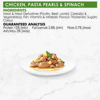 Fancy Feast Inspirations Chicken Pasta Spinach merupakan makanan kucing basah untuk kucing dewasa yang terinpirasi dari resep gourmet chef. Varian ini mengandung ayam suwir lezat yang disajikan dengan pasta mutiara dan bayam segar sehingga cocok disajikan untuk kucing kesayangan Anda.