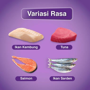 - Nutrisi lengkap yang seimbang Sensasi Campuran Rasa Ikan dalam 1 kemasan