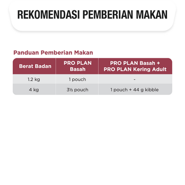 Pro Plan Wet Adult mengandung protein dan kalori yang seimbang untuk menjaga bentuk tubuh ideal kucing dewasa.