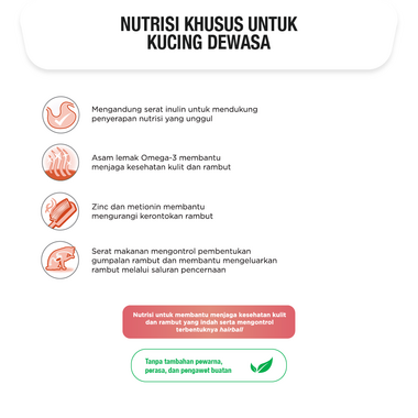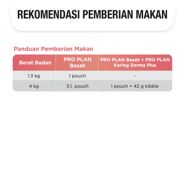 Pro Plan Wet Derma Plus mengandung nutrisi yang dapat membantu untuk menjaga kesehatan kulit, rambut yang indah dan mengontrol terbentuknya hairball.