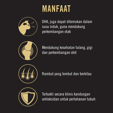 - DHA, juga dapat ditemukan dalam susu induk, guna mendukung perkembangan otak