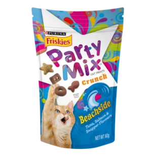 Snack Kucing Kering dengan rasa Beachside; Tuna, Salmon; Snappers, digunakan sebagai makanan selingan dan diberikan sebagai hadiah. Digunakan sebagai makanan selingan dan diberikan sebagai hadiahMengandung sereal gandum utuh, olahan daging, minyak nabati, vitamin, mineral & asam amino.Snack Kucing kering dengan rasa Tuna, Salmon & Snapper